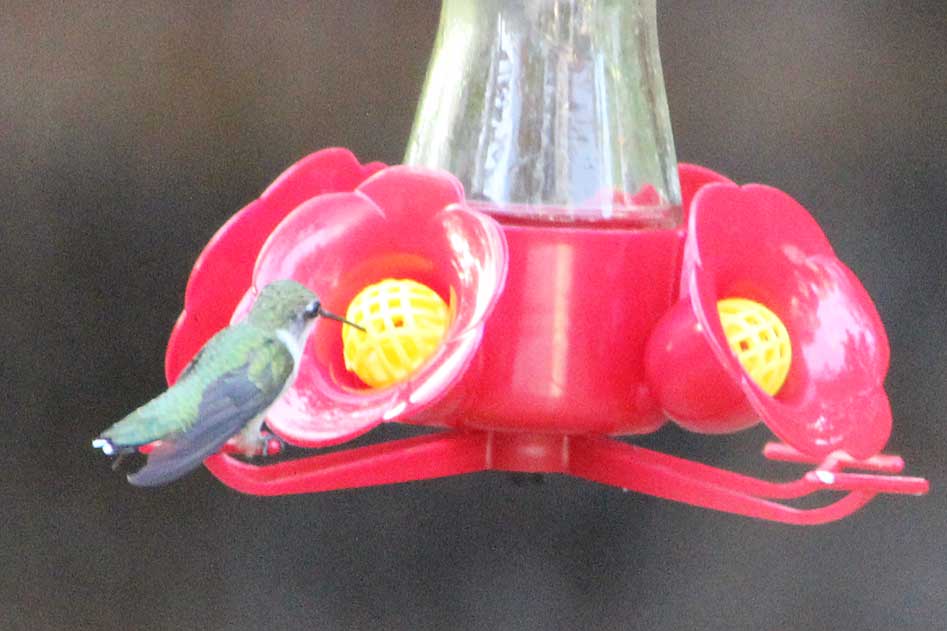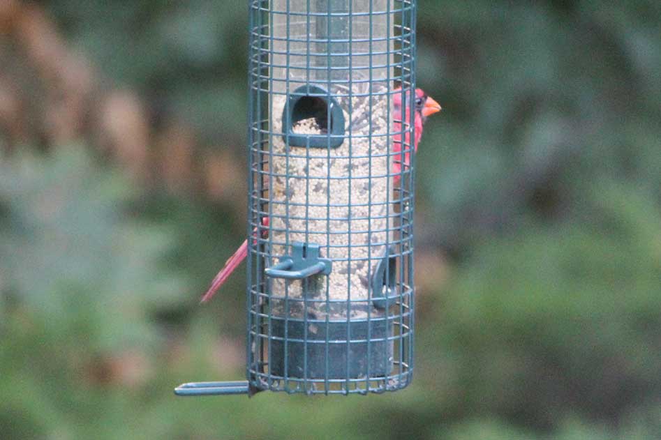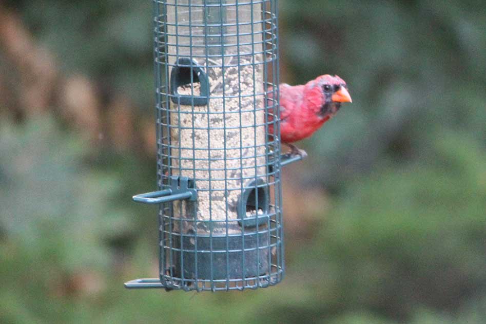 Meanwhile, another father is forced to eat at the birdfeeder: Mr. Cardinal.