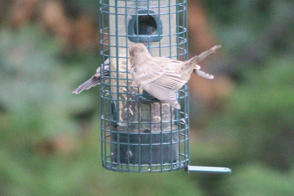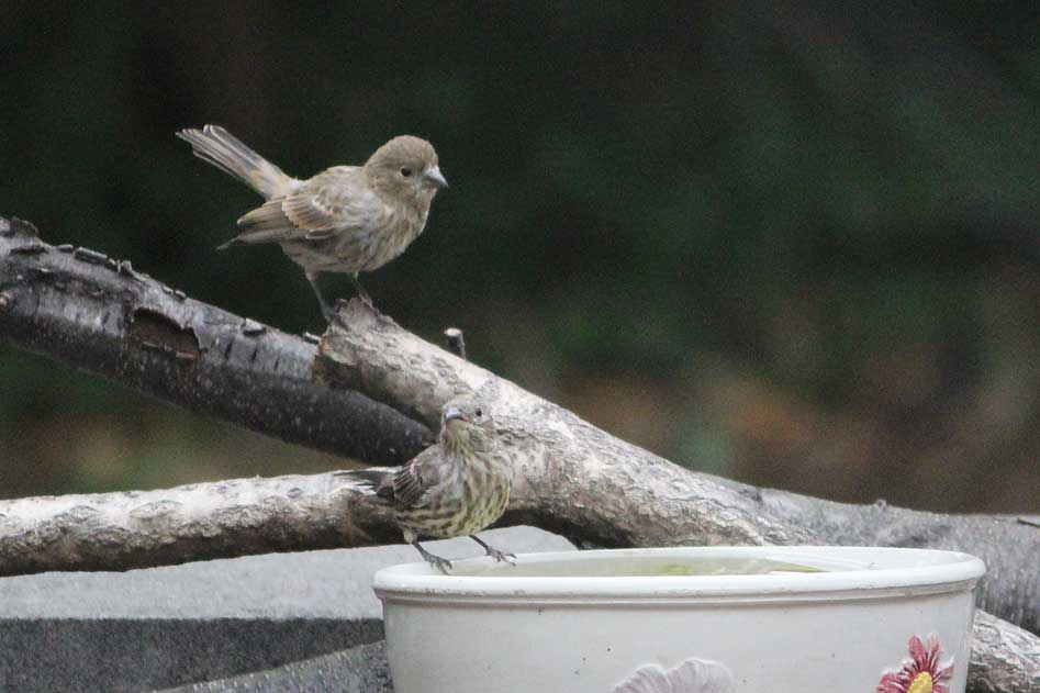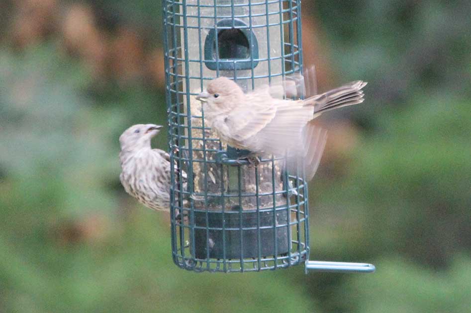 But mother house finch just shows junior how it's done. "You've got to learn how to fend for yourself, my child."