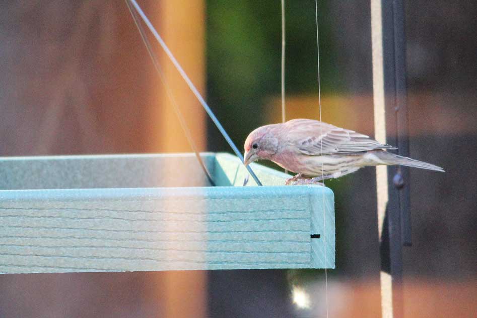 The house finches are good at emptying the mesh feeder filled with black oil sunflower seeds.