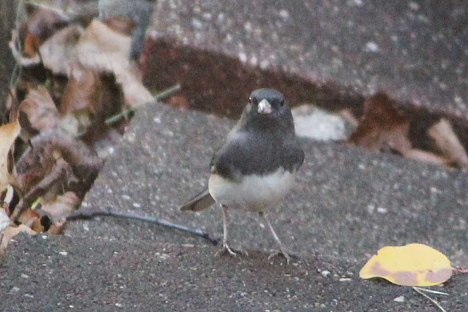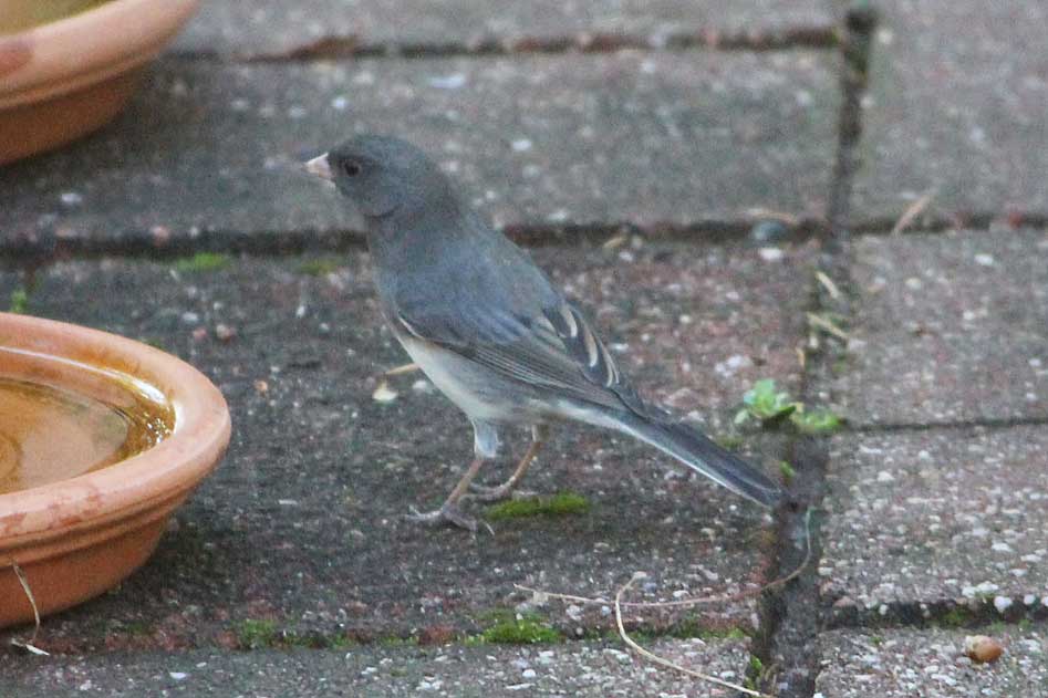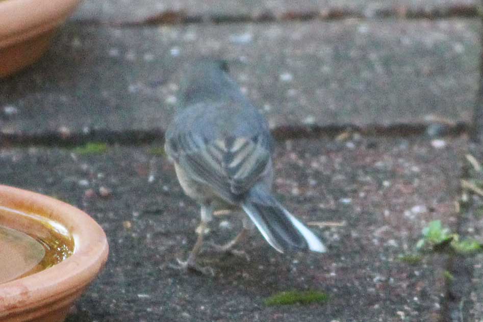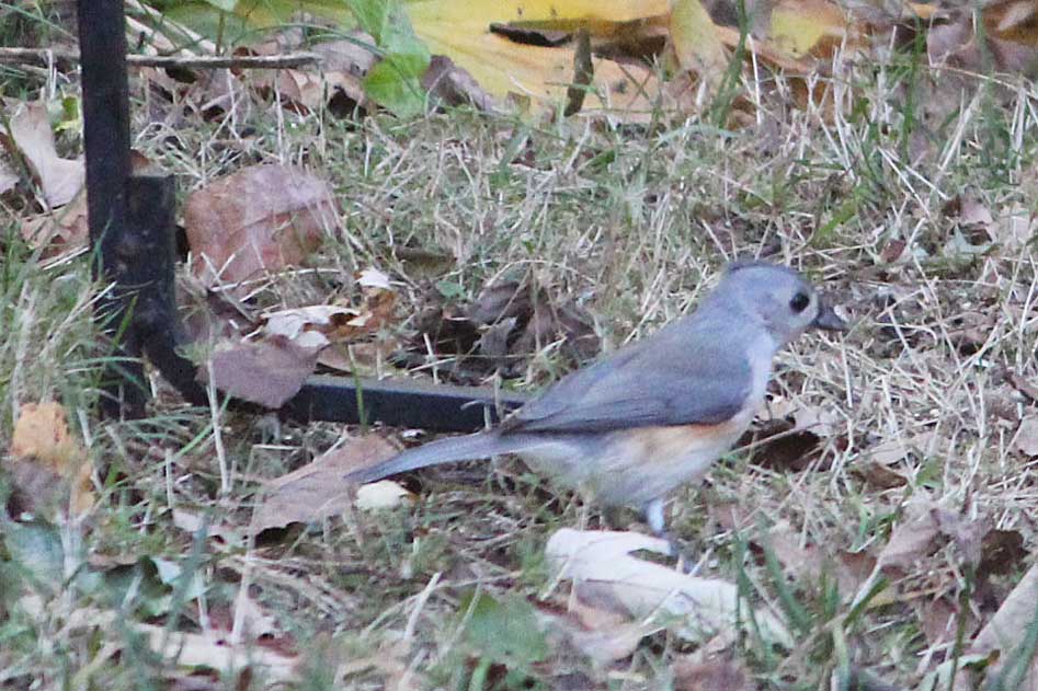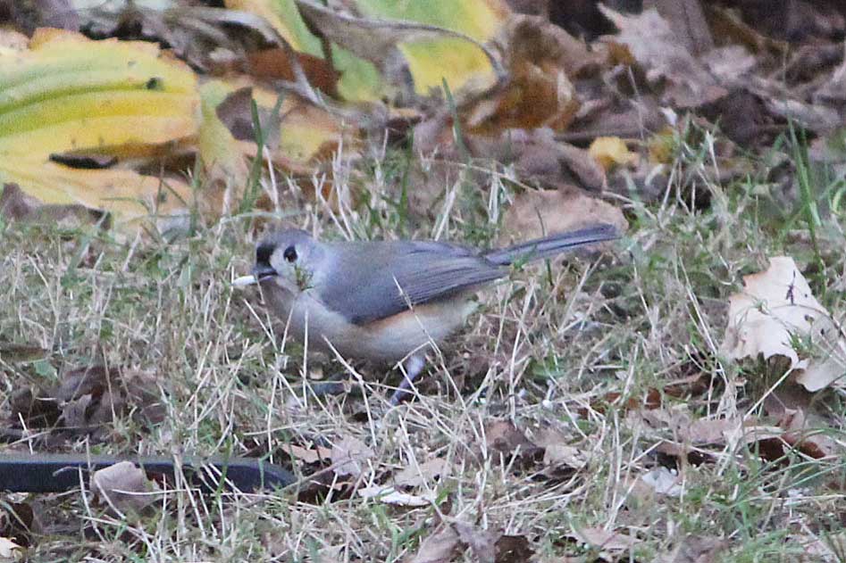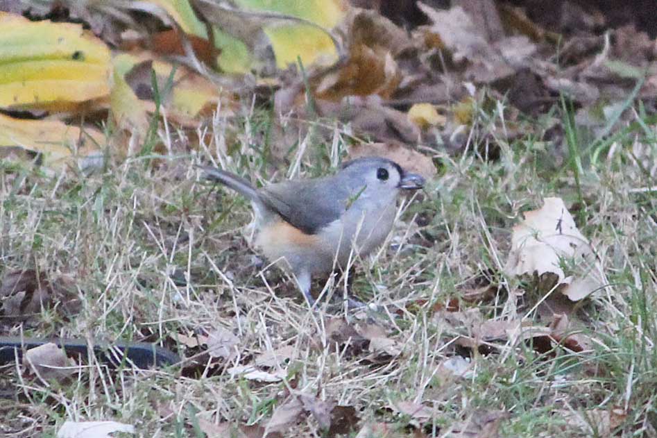 Must be a new visitor; this titmouse doesn't use the feeders, but looks for seeds on the ground