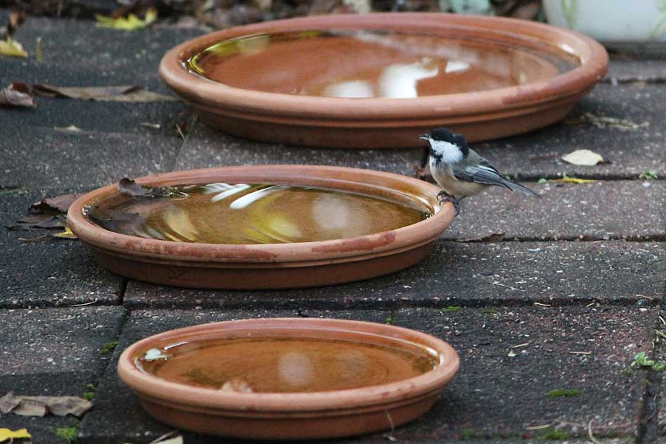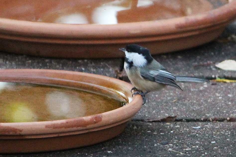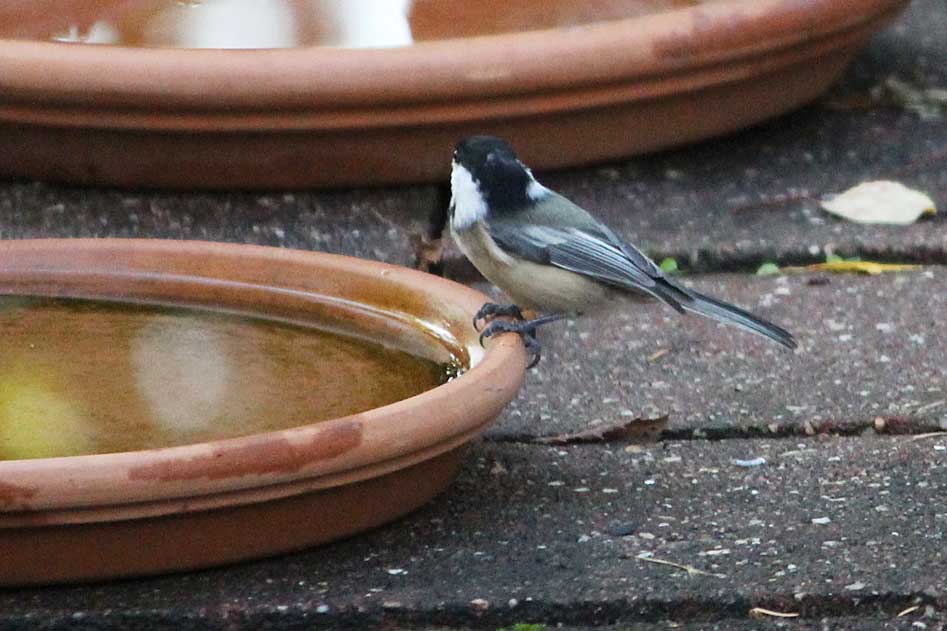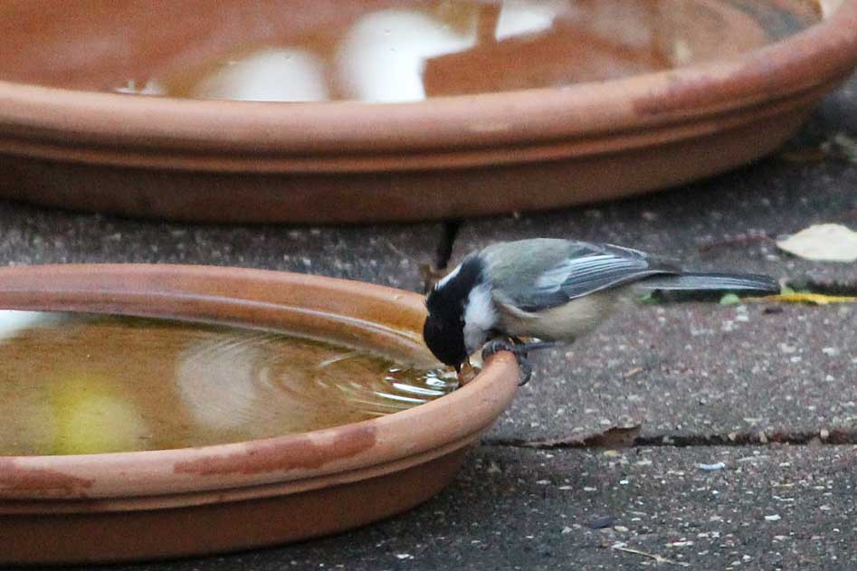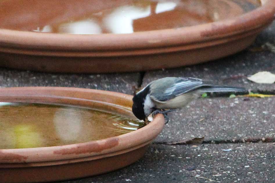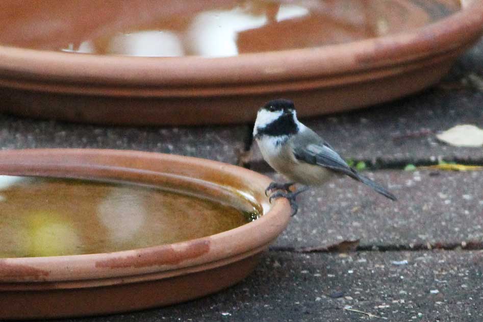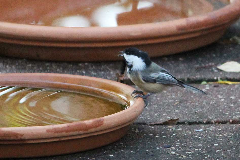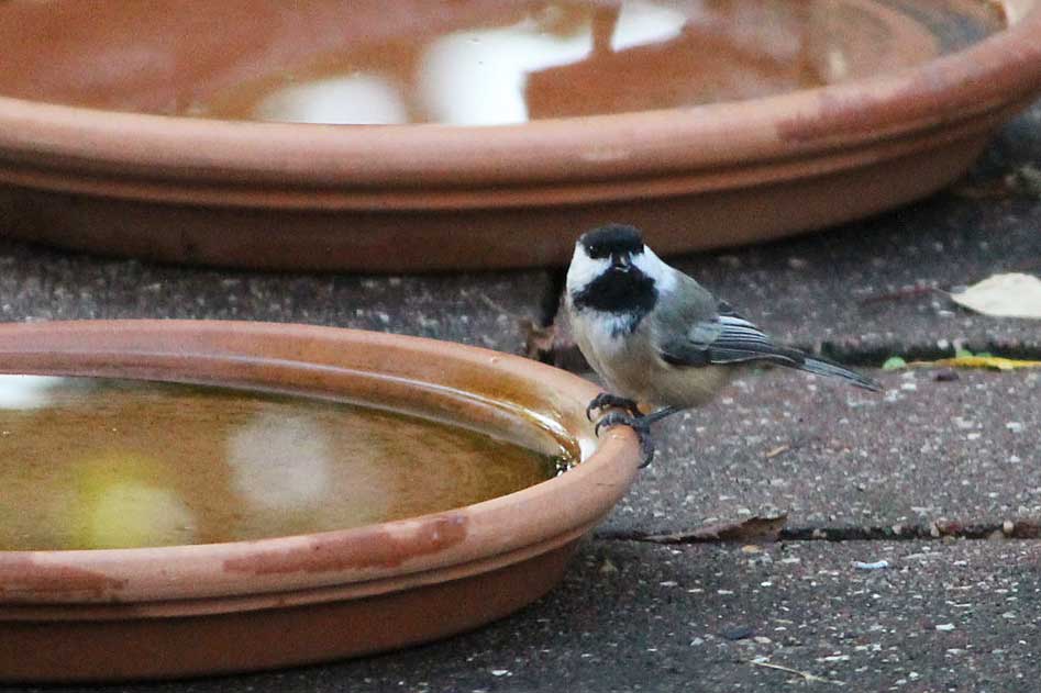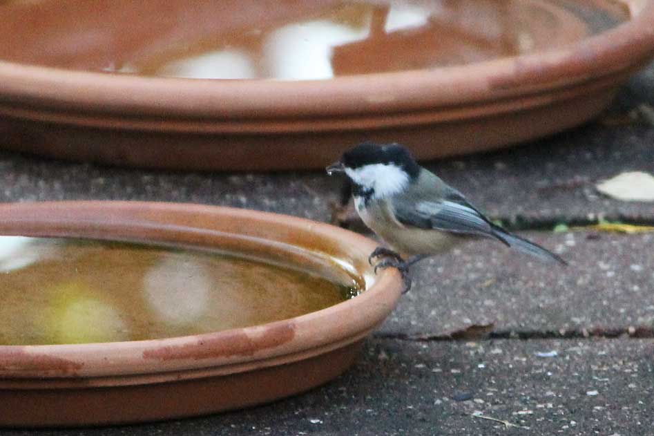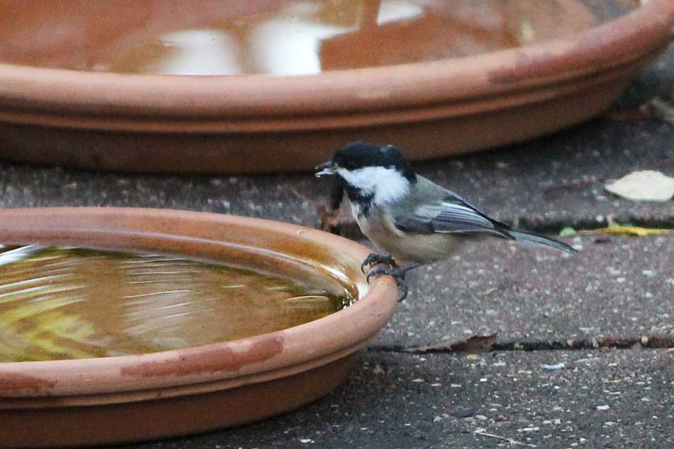 A chickadee is rarely seen taking a drink, so this was a special camera moment